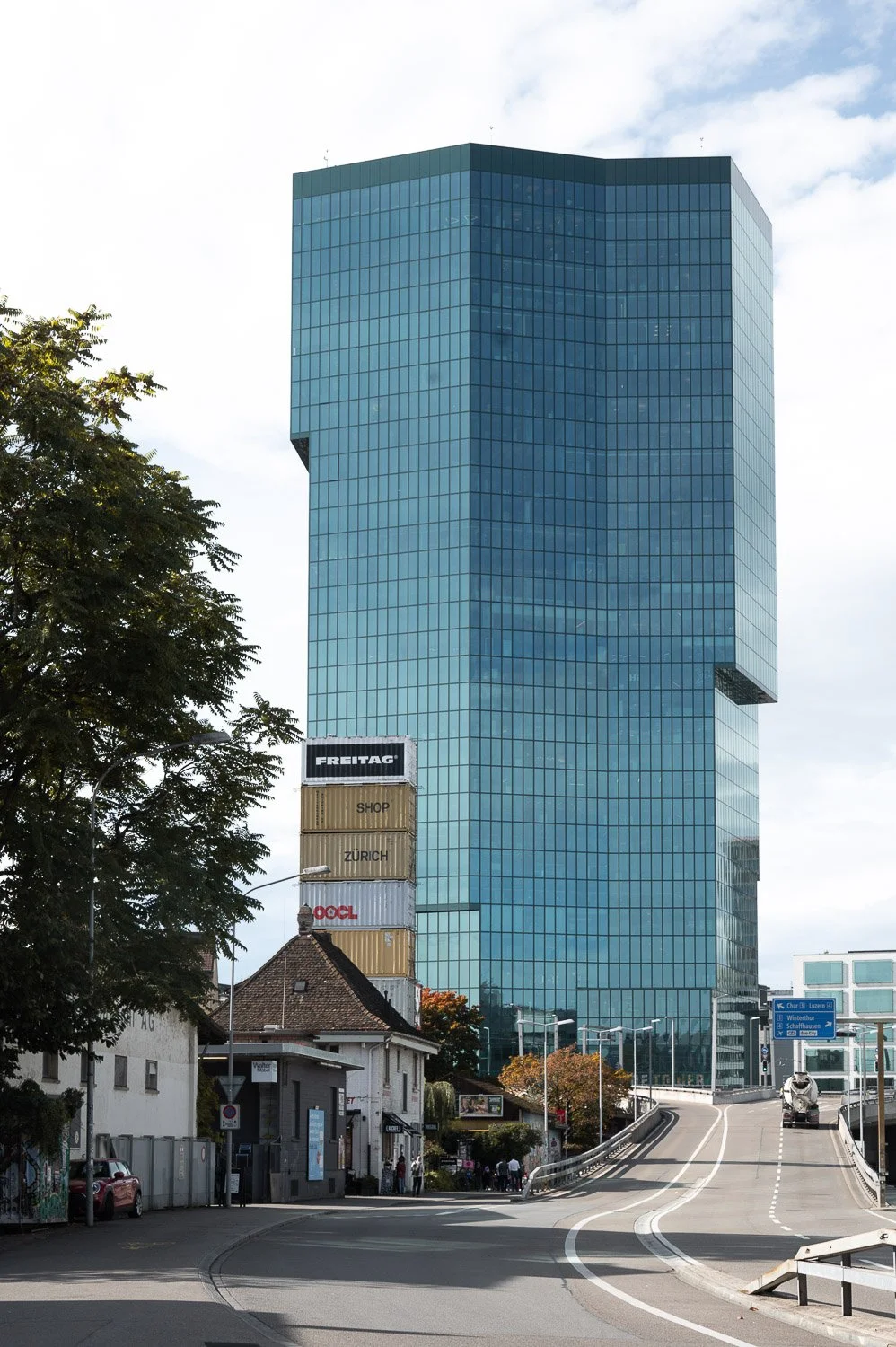 It is easy to imagine the vocation of this neighborhood, formerly an industrial suburb, now a residential area that is gradually being redeveloped. Around the Hardbrücke train station, there are modern buildings such as the Prime Tower, the tallest building in Zurich, where you can have coffee or dine in the top-floor restaurant with a view of the entire city, and old redeveloped buildings, such as the Viadukt, a railway viaduct under whose arches have been built stores and restaurants, and on whose old railroad track runs a promenade with a bicycle path.