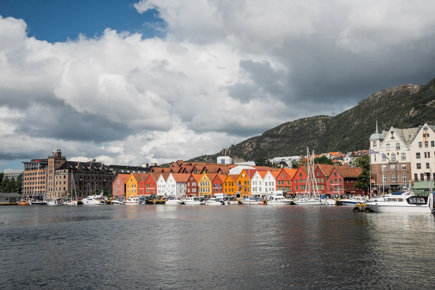 We descend to Skuteviken, in the west, where among some white houses with shimmering dark ceramic roofs, we reach a secondary port. We return to the harbour passing through the defense walls, next to the Bergenhus, a medieval building nestled in a park at the edge of the district of Bryggen.